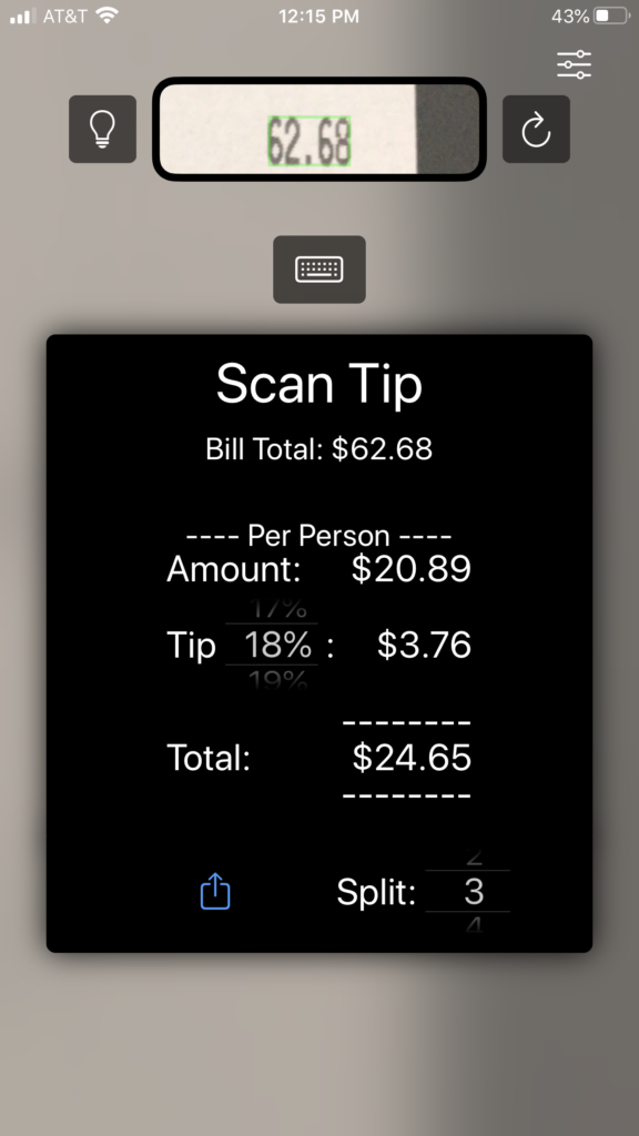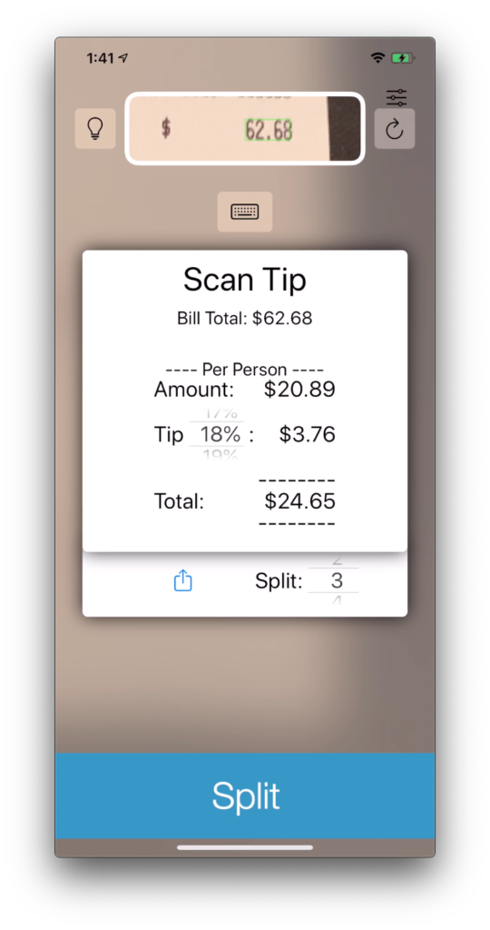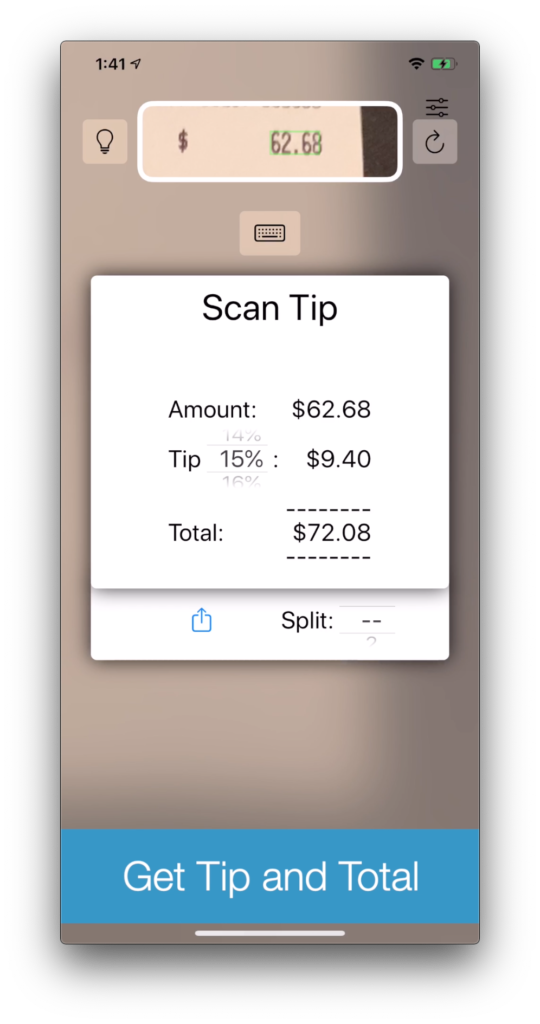 A tip calculator app for the iPhone and iPad that scans the amount and calculates the tip for you in seconds.